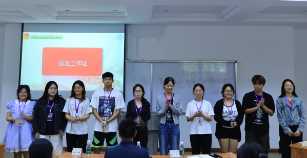 之后,由指导老师、主席团和各部门负责人分别为第十五届团务中心全体成员颁发工作证,这也标志着第十五届团务中心正式成立。