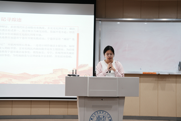 在实践成果展示分享环节,三支实践队依次分享了各自的实践过程和成果。“赤色筑梦”实践队聚焦闽西和赣南红色建筑遗址的保护羽开发,通过走访参观、交流访谈与问卷调查,深入挖掘其精神内涵与当代价值,探索红色古建筑保护的新方式。“听风传梦”实践队深入走访闽东多处红色遗址和纪念馆,穿越历史的时空,了解红色电波背后的历史脉络,精心打造系列互动文创产品,以独特创意传承红色基因,展现青年一代对革命传统的创新诠释。“青茶筑梦”实践队则将目光投向闽东和闽北的茶乡,开展实地调研,深入挖掘茶叶生产背后的故事,细致梳理茶文化的发展脉络,为传承与弘扬茶文化注入新的活力。