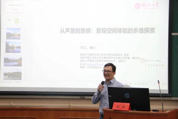 12月5日下午,“从声景到景感:景观空间体验的多维探索”学术讲座在人文B301报告厅成功举办。讲座特邀福州大学建筑与城乡规划学院教授、博士生导师,福建省国土空间分析与模拟数字技术重点实验室副主任刘江担任主讲,建筑学院师生共同参与。