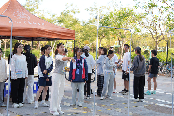 活动吸引80余名学生报名参与。同学们以徒步打卡的方式依次寻访校园内6处“红色驿站”,在沉浸式互动中汲取奋进动能:风雨球馆内,“警钟长鸣”沙包击铃考验手眼协调,敲响居安思危的警钟;嘉庚广场上,“星火轨迹”磁力游行再现当年学子同仇敌忾、热血卫国的场景;高捷成烈士铜像前,“铭记英烈”翻牌配对,让敬意于指尖定格;水上音乐广场的“战术迷踪”声东击西,在闪转腾挪间体悟敌后游击的斗争智慧;玉兰广场的“历史拼图”拼合碎片,回望峥嵘岁月;学生活动中心“胜利征途”滚球闯关,复现抗战艰辛历程,让烽火岁月可见可感。