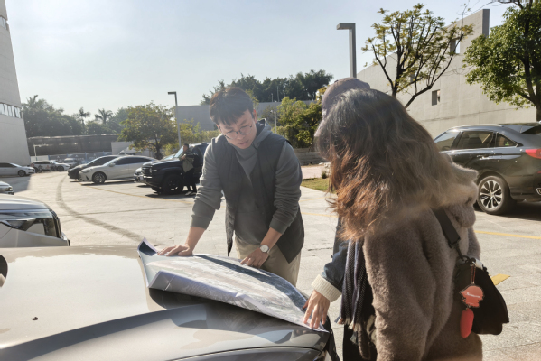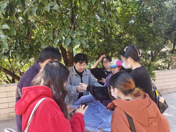 尹国斌、陈宏伟两位外聘老师则引导学生自主开展调研,培养学生独立实践能力;魏翔燕、王冰老师提前为学生准备完备的调研资料,同时组织学生统筹时间相约集体实地踏勘,进一步深化对基地的认知。