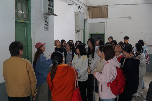 图2 带队老师尹巧玉向同学们介绍漳州茶厂建筑历史 摄影:张浩